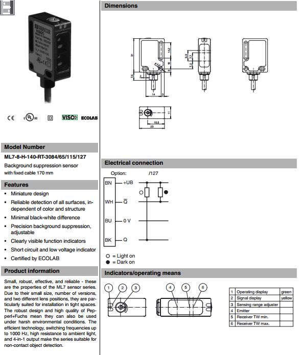 ML7-8-H-140-RT/65a/115/120,漫反射型傳感器