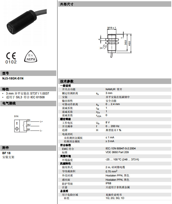 NJ3-18GK-S1N電感式接近開關(guān)