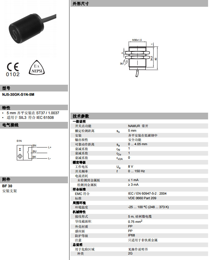 NJ5-30GK-S1N-5M電感式接近開(kāi)關(guān)