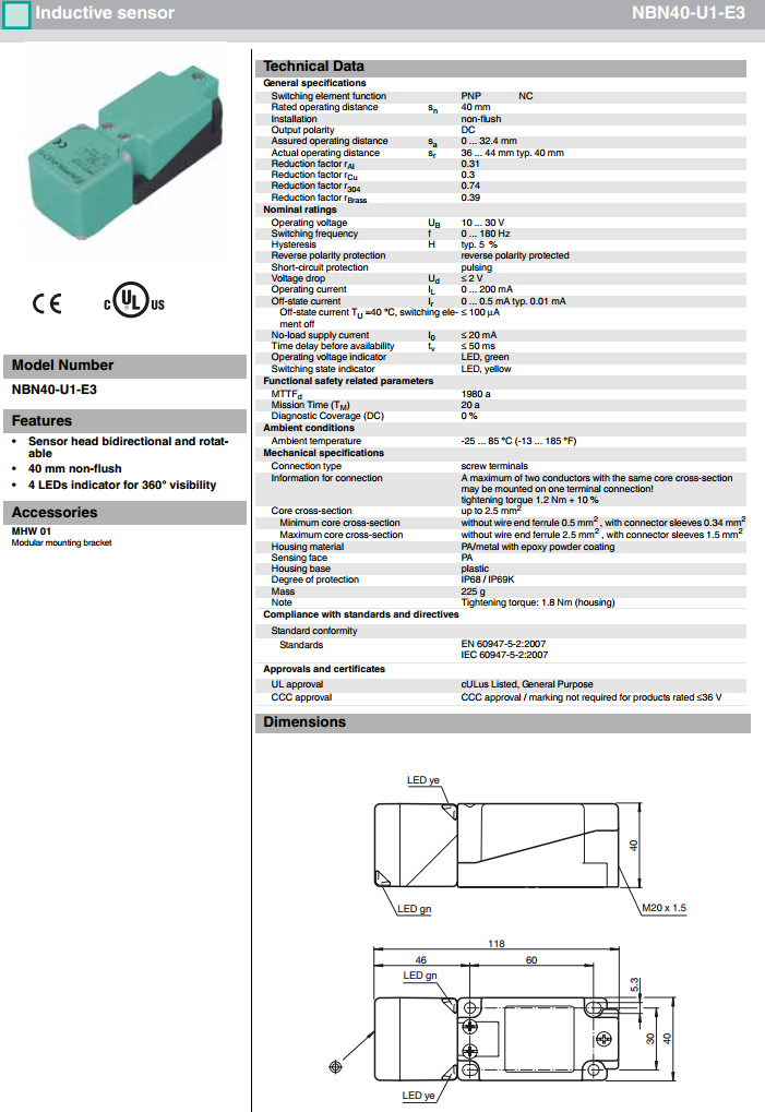 NBN40-U1-E1-M,NBN40-U1-E1-V1,NBN40-U1-E3,NBN40-U1-E3-M