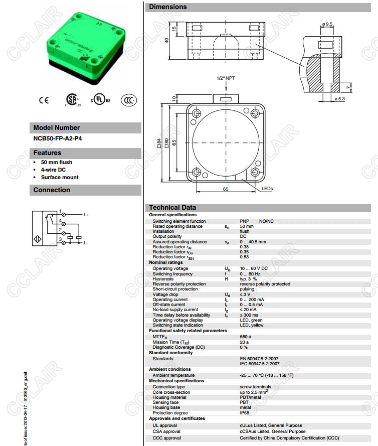 NCB50-FP-A2-P4,電感式接近開(kāi)關(guān)