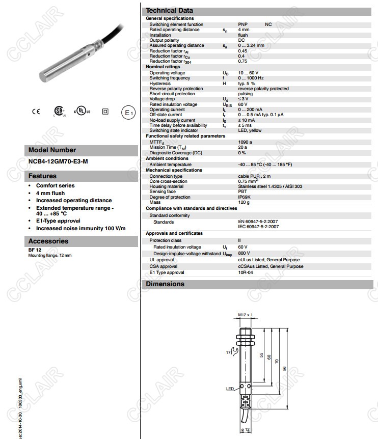 NCB4-12GM70-E1-M,NCB4-12GM70-E2-M,NCB4-12GM70-E3-M