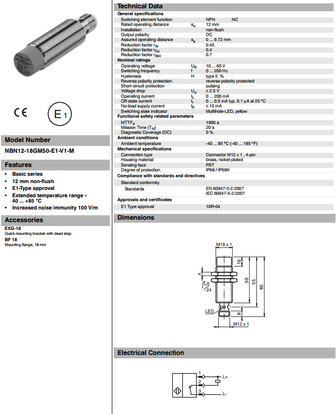 NBN12-18GM50-E1-V1-M電感式接近開關(guān)