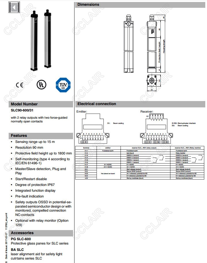 SLC90-600/31,SLC90-900,SLC90-900-S,SLC90-900/31,安全光柵