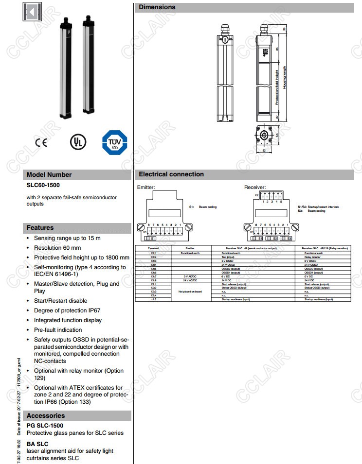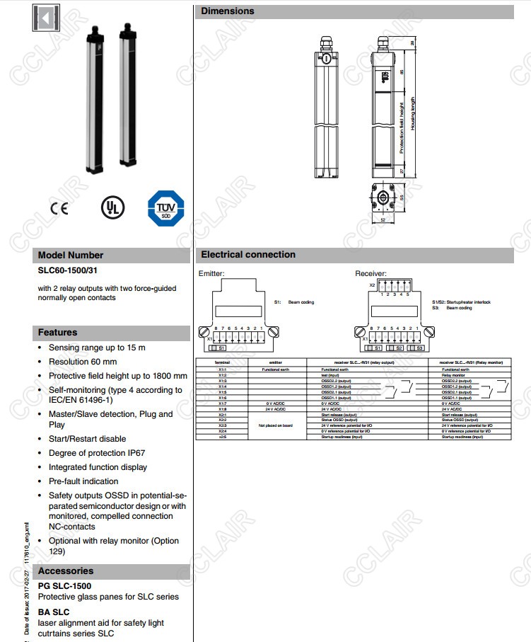 SLC60-1500,SLC60-1500-S,SLC60-1500/31,SLC60-1800,SLC60-1800-S,安全光柵