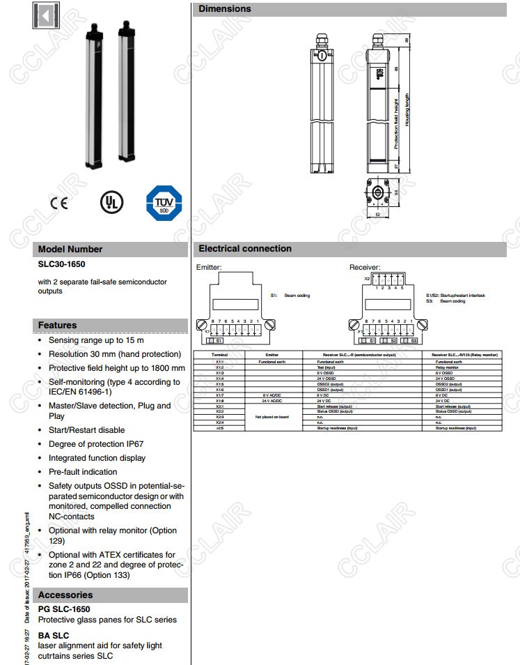 SLC30-150/31,SLC30-1500,SLC30-1500-S,SLC30-1500/31,SLC30-1650,SLC30-1650-S,安全光柵