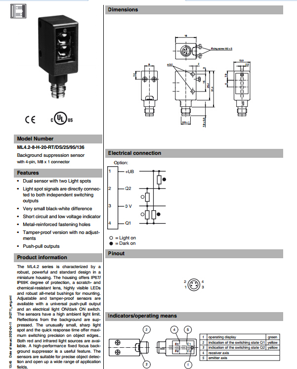 ML4.2-8-H-21-22-IR/40b/95/110,漫反射型傳感器