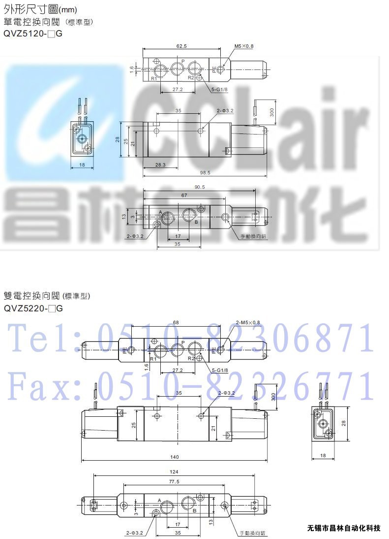 QVZB5120-7G-01,QVZB5120-7D-01,QVZB5120-8G-01,QVZB5120-8D-01,二位/三位五通電控換向閥