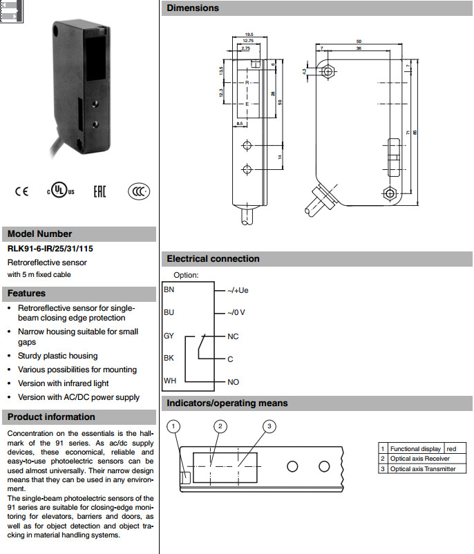 RLK91-6-IR/25/31/115電梯傳感器