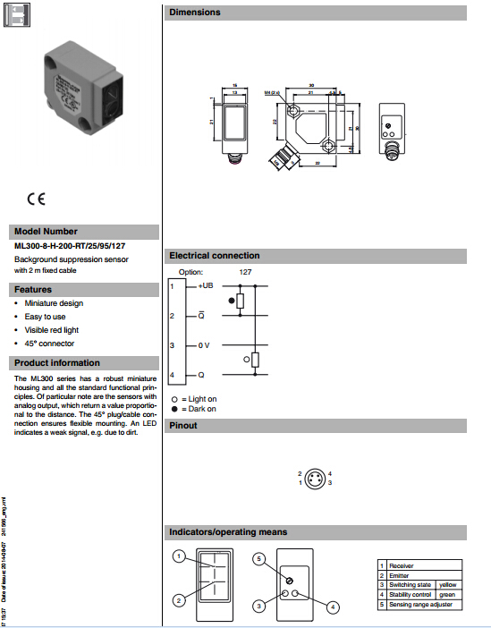 ML300-8-H-200-RT/25/95/127,漫反射型傳感器