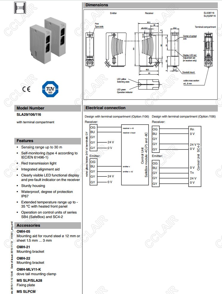SLA29/106/116,對(duì)射型安全光電傳感器