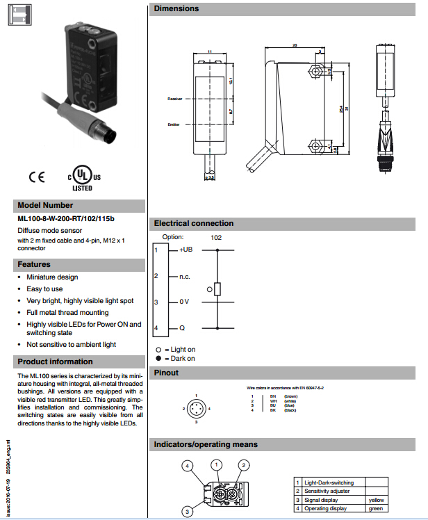 ML100-8-W-200-RT/102/115b,漫反射型傳感器