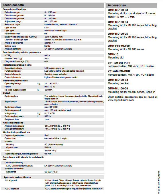ML100-8-H-200-IR/95/103,漫反射型傳感器