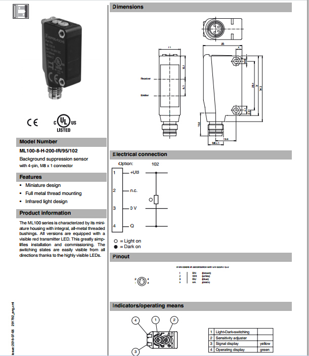 ML100-8-H-200-IR/95/102,漫反射型傳感器