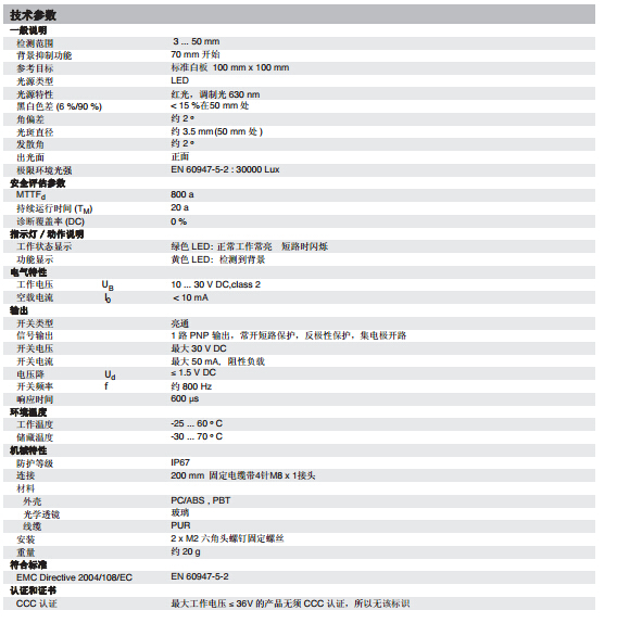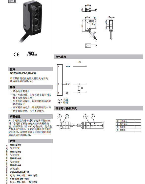 OBT50-R2-E2-0,2M-V31,漫反射型傳感器