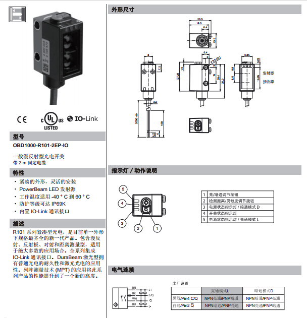 OBD1000-R101-2EP-IO,漫反射型傳感器