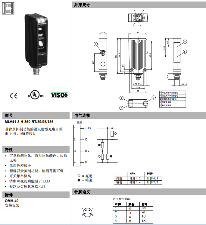 MLV41-8-H-350-RT/59/95/136,漫反射型傳感器