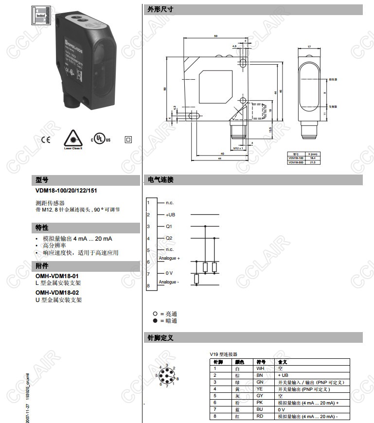 VDM18-100/20/122/151,VDM18-100/20/88/122/151,VDM18-300/20/122/151,測距傳感器