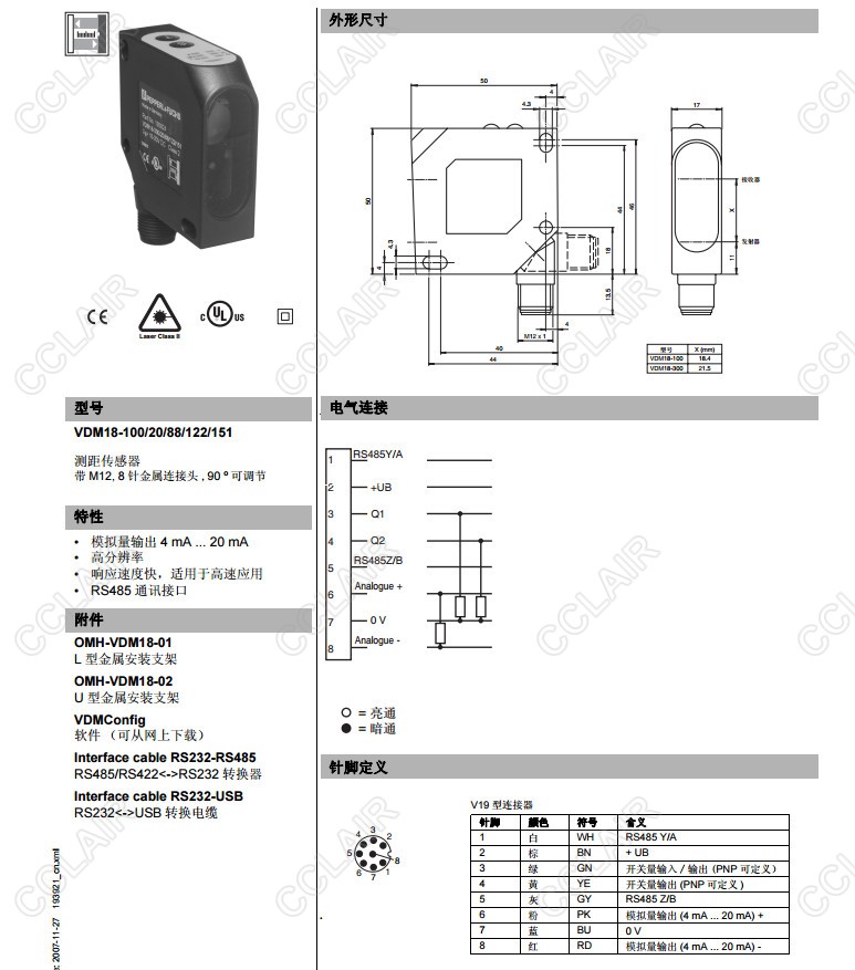 VDM18-100/20/122/151,VDM18-100/20/88/122/151,VDM18-300/20/122/151,測距傳感器