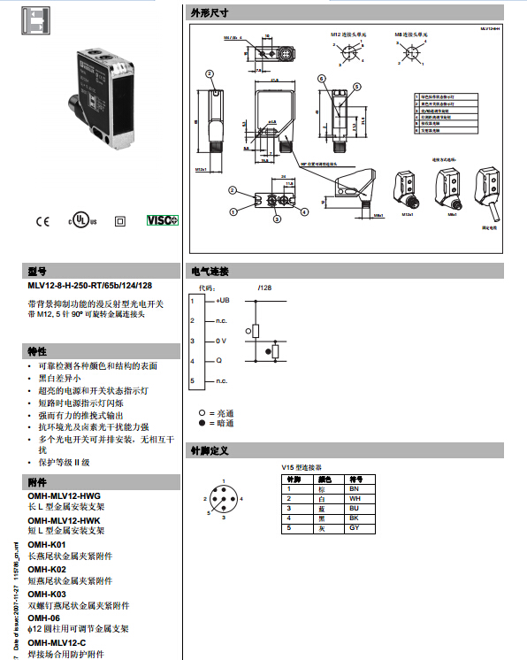 MLV12-8-H-250-RT/65b/124/128,漫反射型傳感器