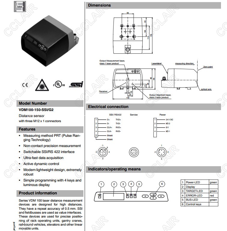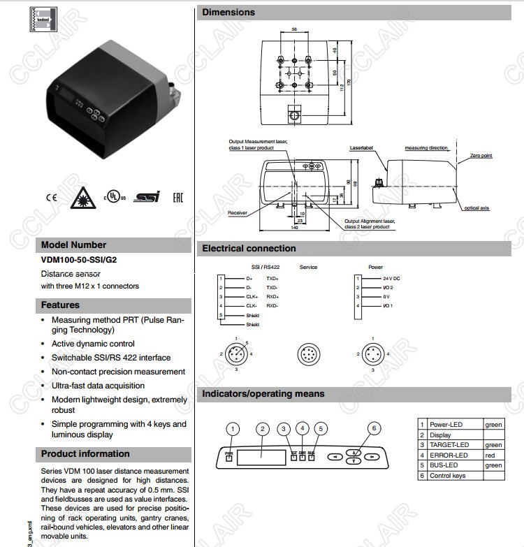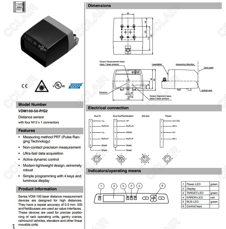 VDM100-150-P/G2,VDM100-150-SSI/G2,VDM100-50-P/G2,VDM100-50-SSI/G2,距離傳感器