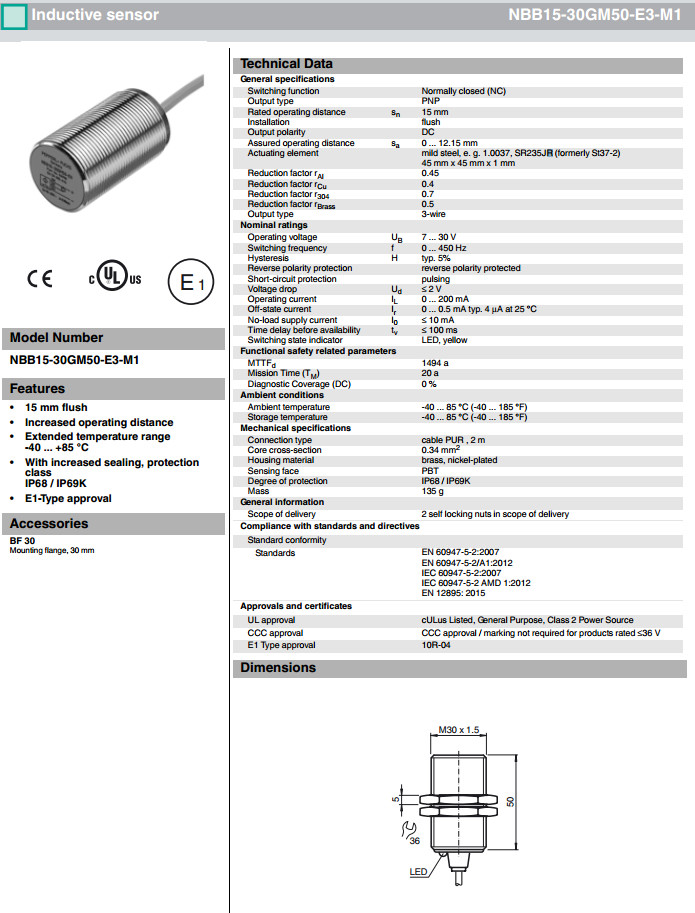 NBB15-30GM50-E2-M1,NBB15-30GM50-E3-M1