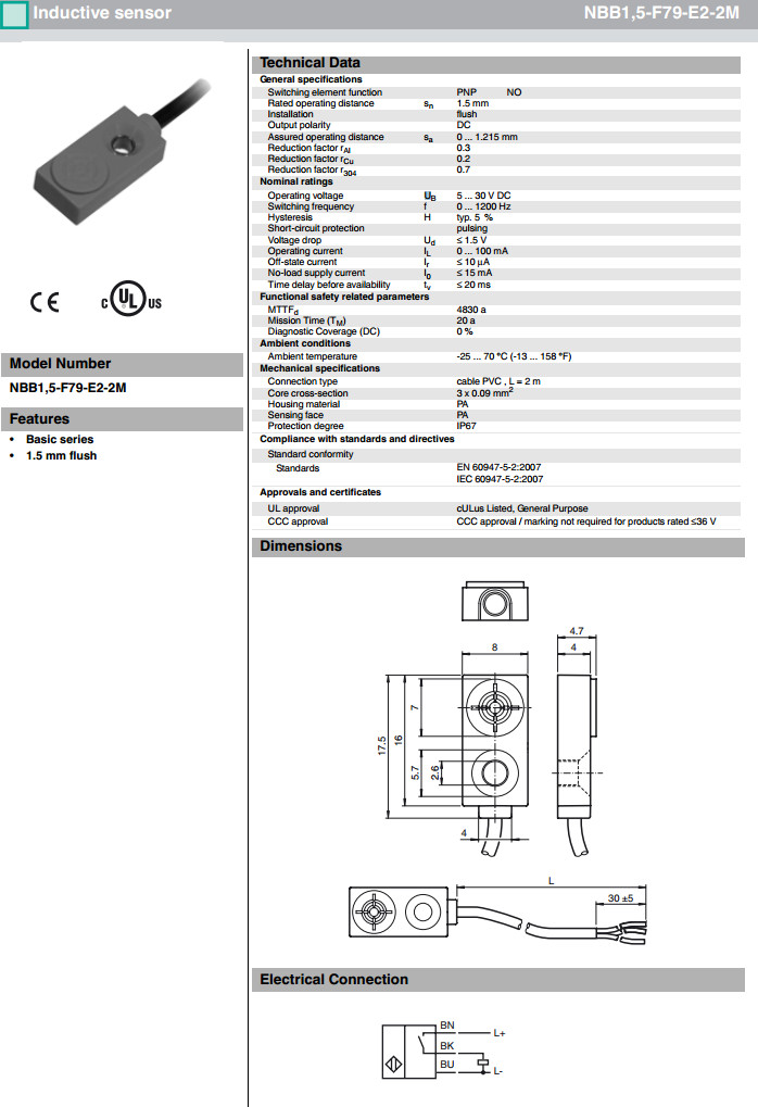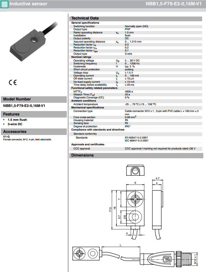 NBB1,5-F79-E2-0,16M-V1,NBB1,5-F79-E2-0,5M,NBB1,5-F79-E2-0,5M