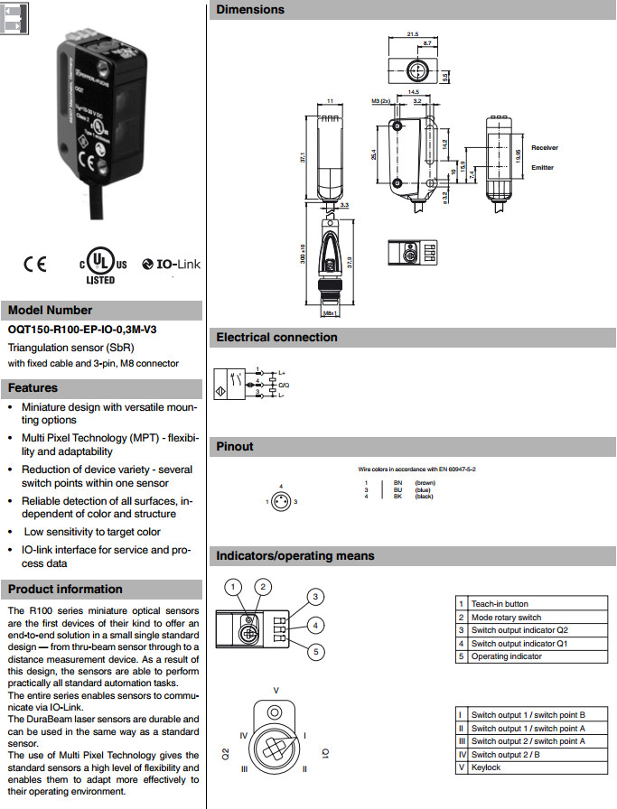 OQT150-R100-EP-IO-0,3M-V3,開關(guān)傳感器