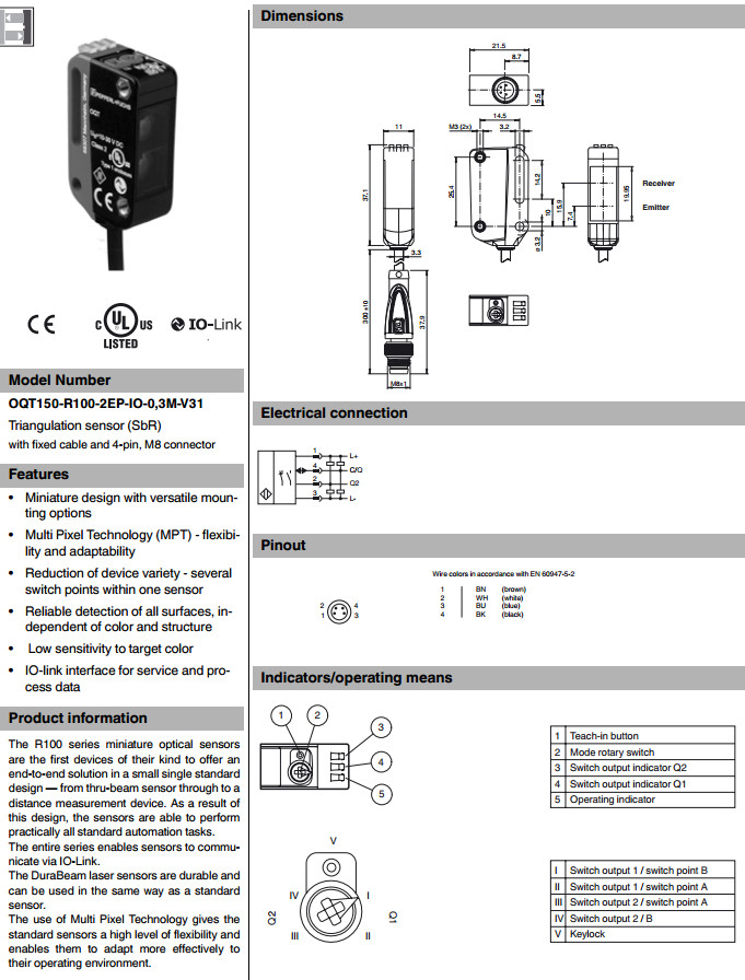 OQT150-R100-2EP-IO-0,3M-V31,開關(guān)傳感器