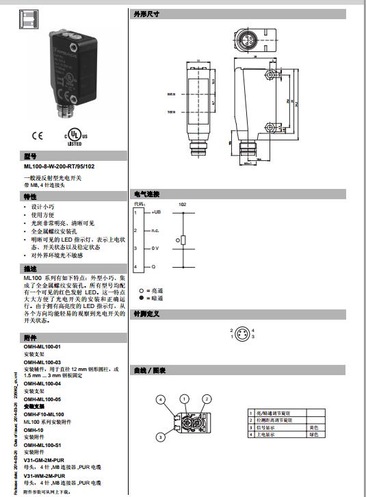 ML100-8-W-200-RT/95/102,漫反射型傳感器