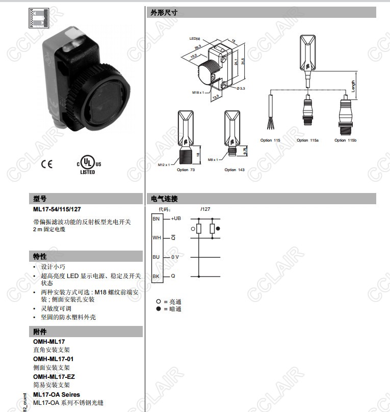 ML17-54/115/120,ML17-54/115/127,反射板型傳感器