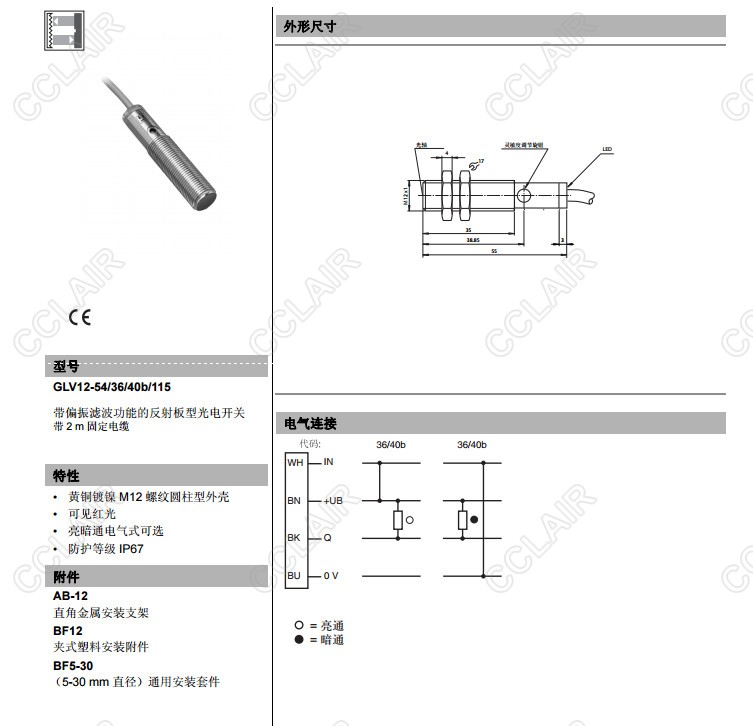 GLV12-54/36/40b/115,GLV12-54/37/40b/115,反射板型傳感器