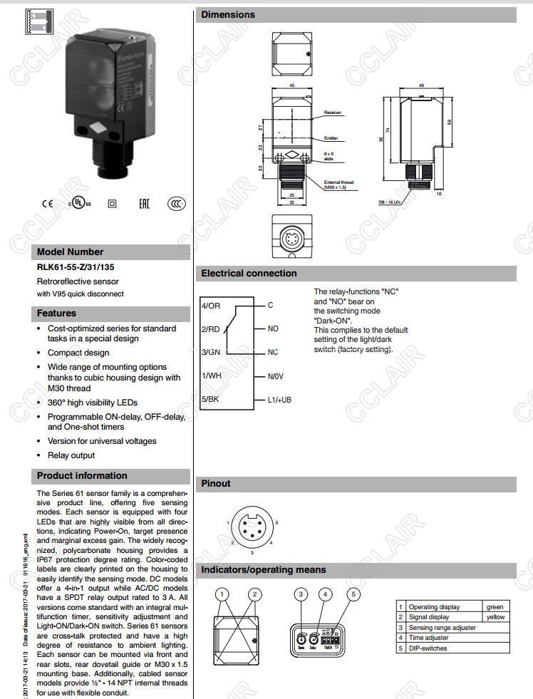 RLK61-55-Z/31/135,RLK61-55-Z/31/168,反射板型傳感器