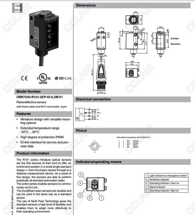 OBR7500-R101-2EP-IO-0,3M-V1,OBR7500-R101-2EP-IO-0,3M-V31,反射板型傳感器