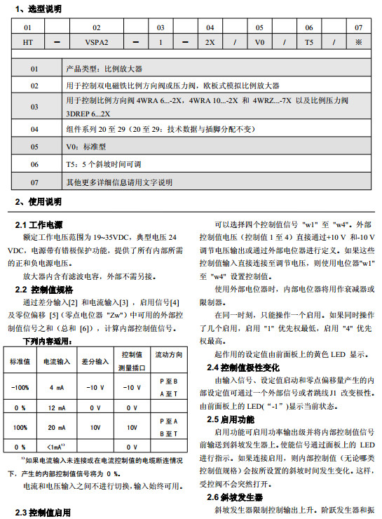 HT-VSPA2-1-20/V0/T5,HT-VSPA2-1-21/V0/T5,HT-VSPA2-1-22/V0/T5,HT-VSPA2-1-23/V0/T5比例放大器