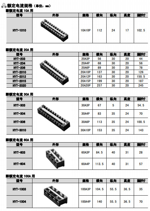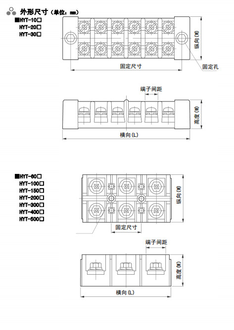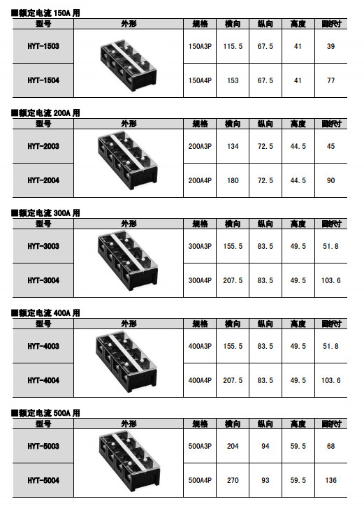 HYT-10A,HYT-20A,HYT-30A,HYT-60A,HYT-100A,HYT-150A,HYT-200A,HYT-300A,HYT-400A,HYT-500A,固定式端子排