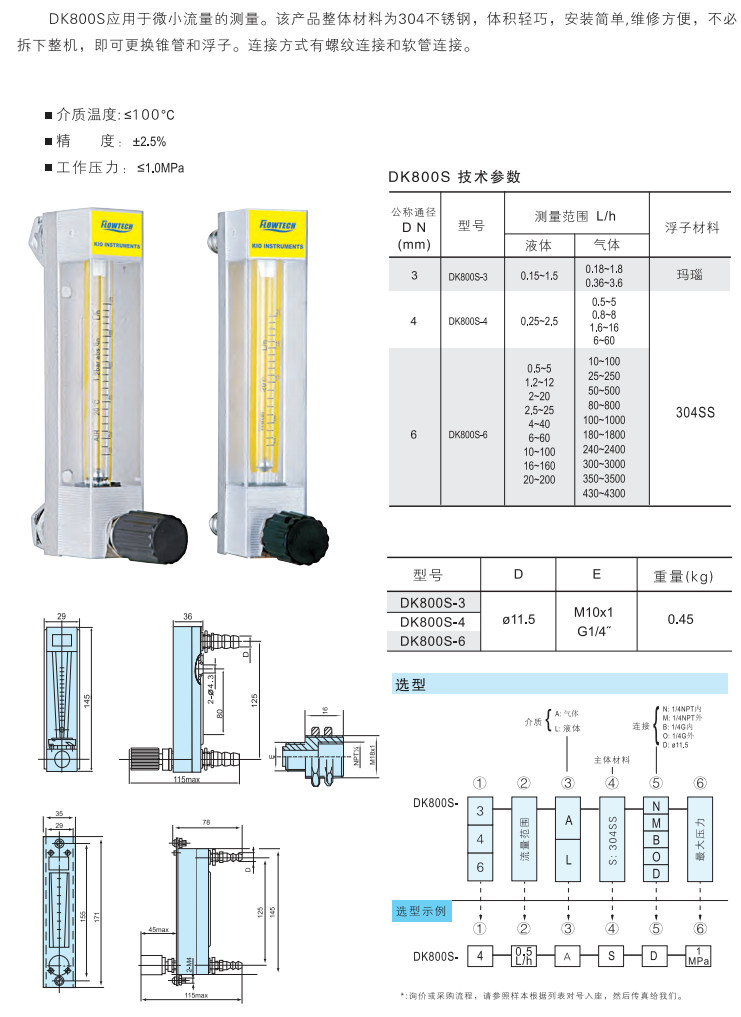 DK800S-3,DK800S-4,DK800S-6,玻璃轉(zhuǎn)子流量計(jì)