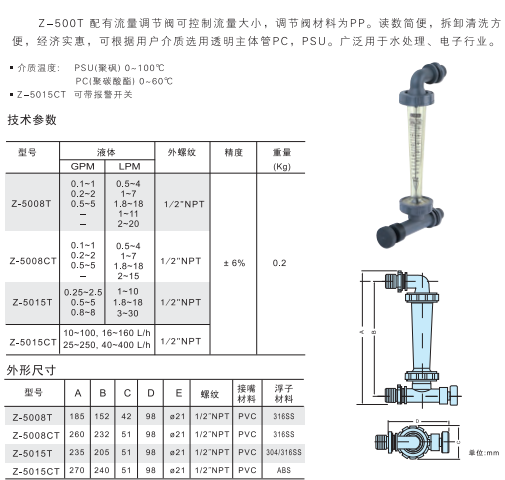 Z-5008T,Z-5008CT,Z-5015T,Z-5015CT,Z-500T面板流量計(jì)