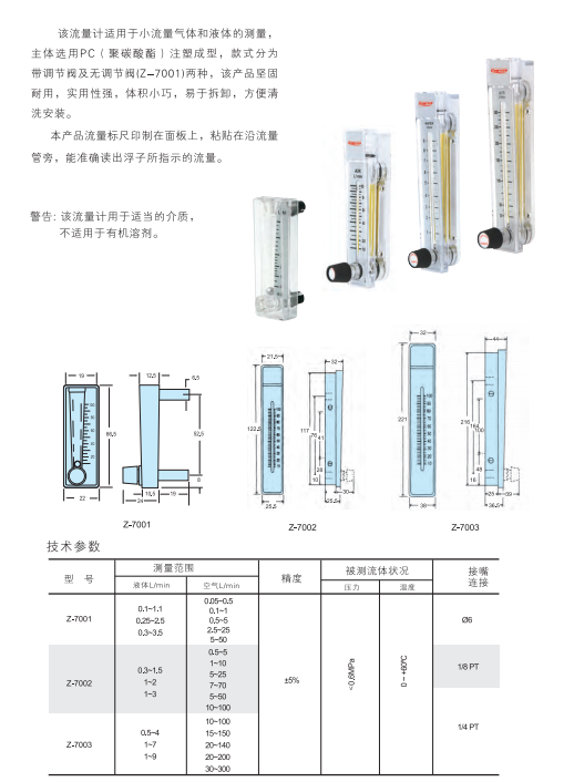 Z-7001,Z-7002,Z-7003,塑料流量計