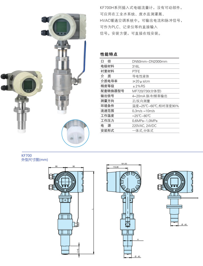 KF700H-B3-50,KF700H-B3-80,KF700H-B3-100,KF700H-B3-125,KF700H-B3-150,插入式電磁流量計(jì)