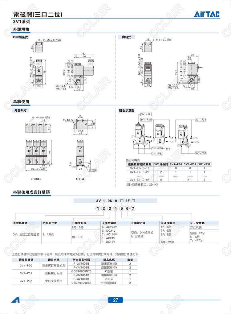 3V1-M5,3V1-06,3V1-M5-A-1F,3V1-M5-A-2F,3V1-M5-A-3F,3V1-M5-A-4F,3V1-M5-A-5F,AIRTAC電磁閥,電磁閥串聯(lián)