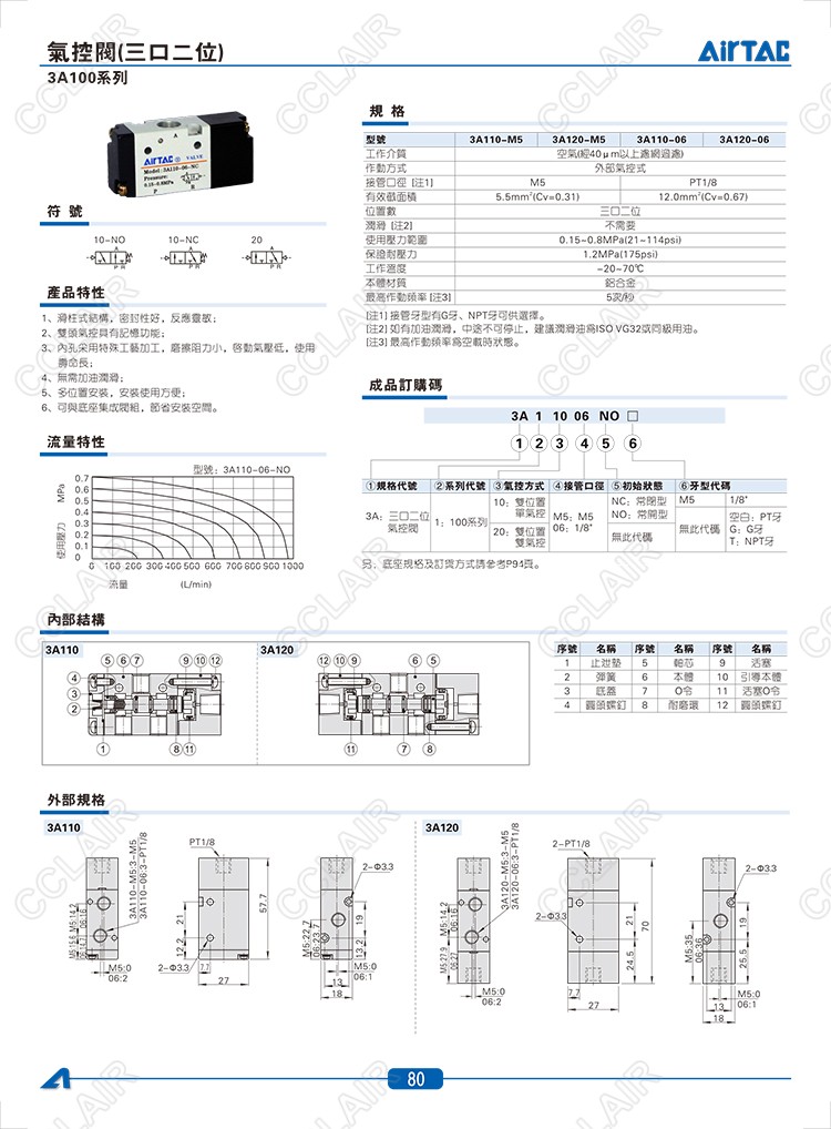 3A110-M5-NC,3A110-M5-NO,3A110-06-NC,3A110-06-NO,3A120-M5,3A120-06,AIRTAC氣控閥