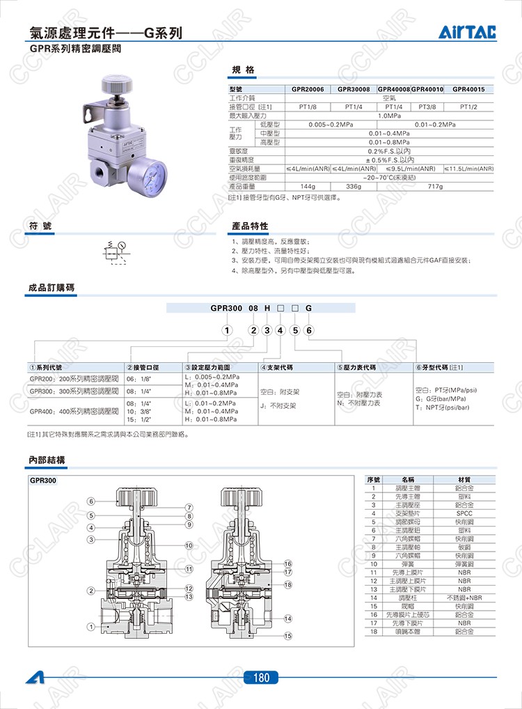 GPR20006L,GPR20006M,GPR20006H,GPR30008L,GPR30008M,GPR30008H,AIRTAC調壓閥