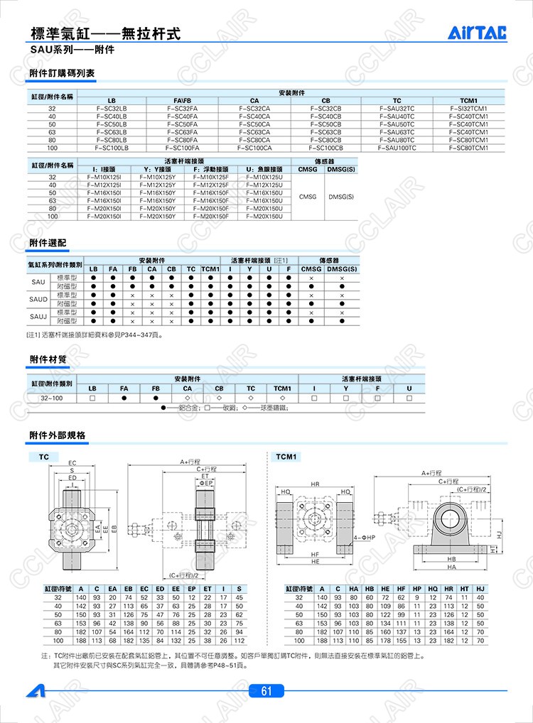 LB32,LB40,CA32,FA/FB32,CB32,TC32,TCM132,TCM140,AIRTAC亞德客標準氣缸附件