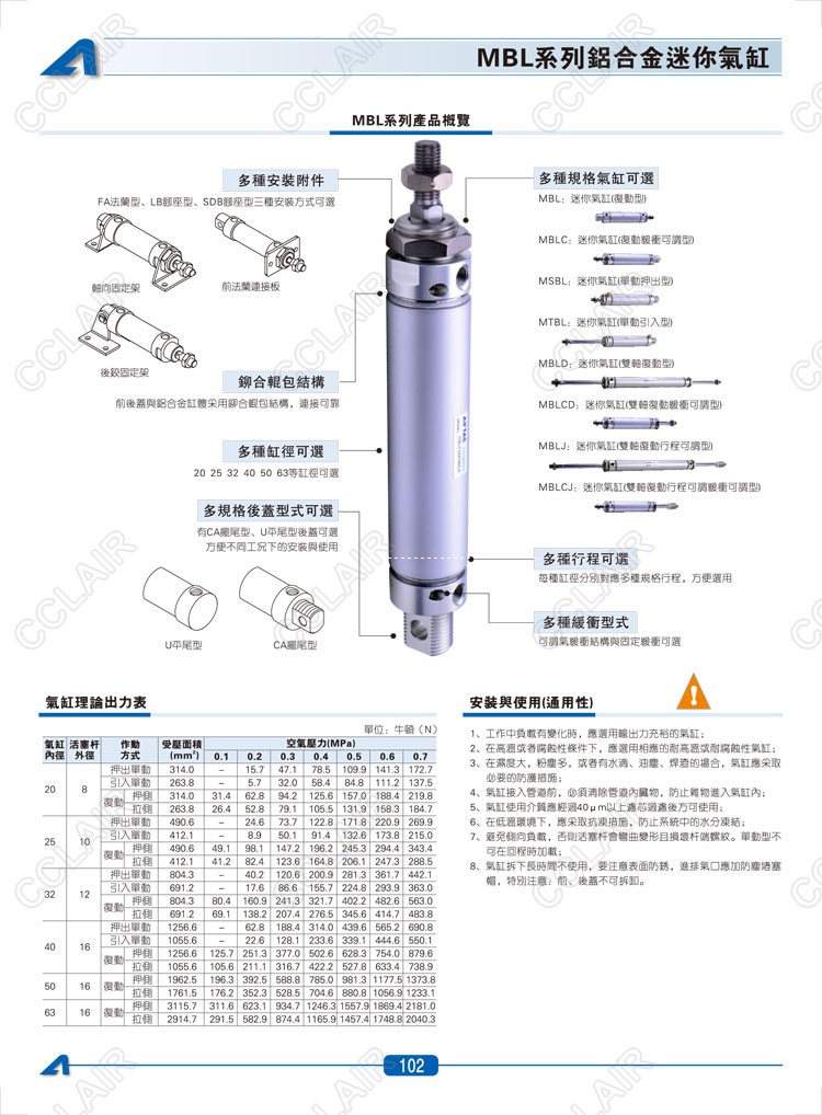 MBL20*10-CA,MBLC20*10-CM,MBLD20*10,MBLCD20*10,MBLCJ20*10,MSBL20*10-U,MTBL20*10-U,AIRTAC亞德客迷你氣缸