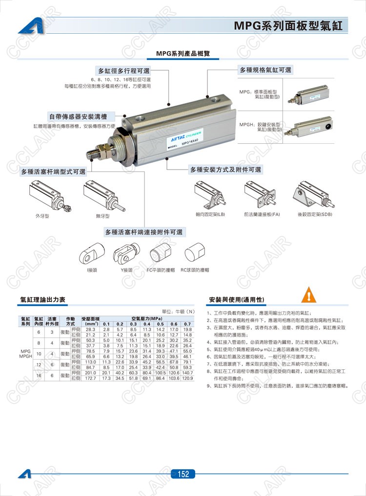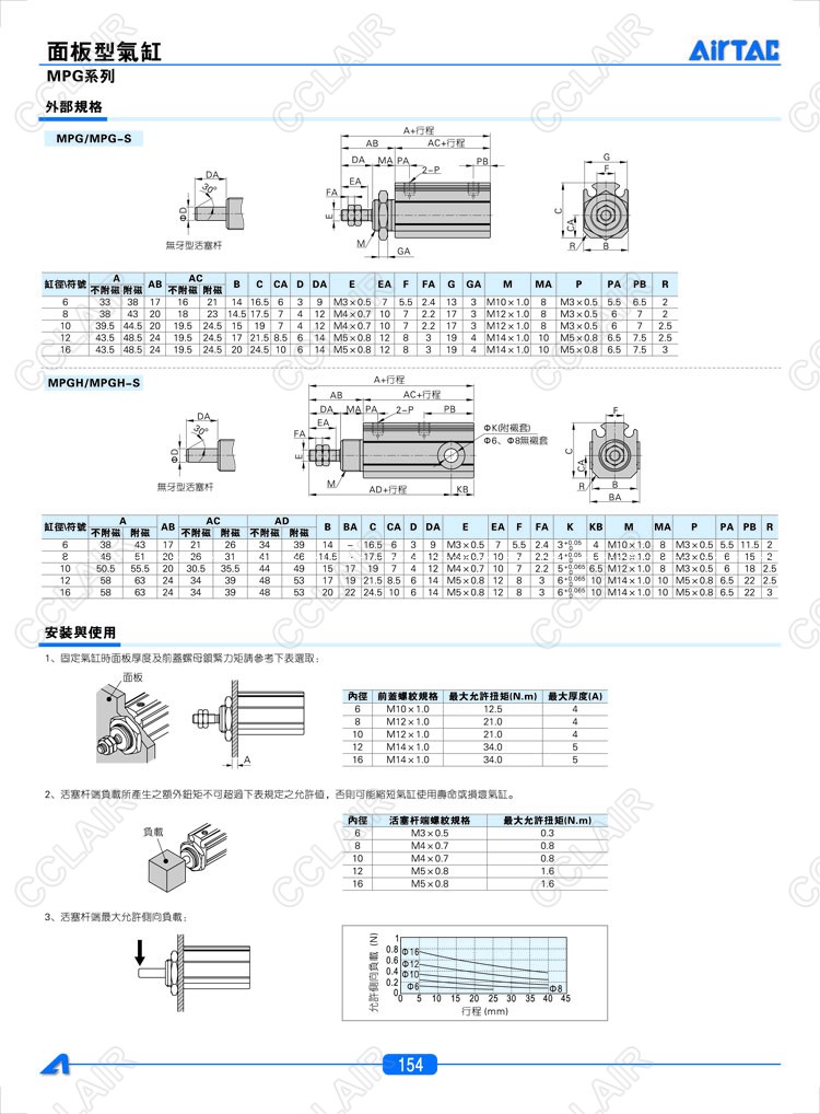 MPG6*5,MPG6*5-S,MPG6*10,MPGH6*5,MPGH6*5-S,MPGH6*10,AIRTAC亞德客面板型氣缸
