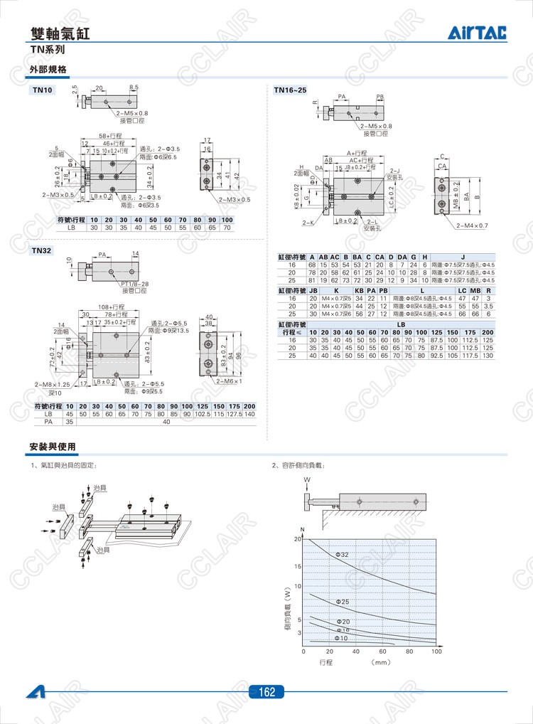 TN10*10-S,TN16*10-S,TN20*10-S,TN25*10-S,TN32*10-S,AIRTAC亞德客雙軸氣缸