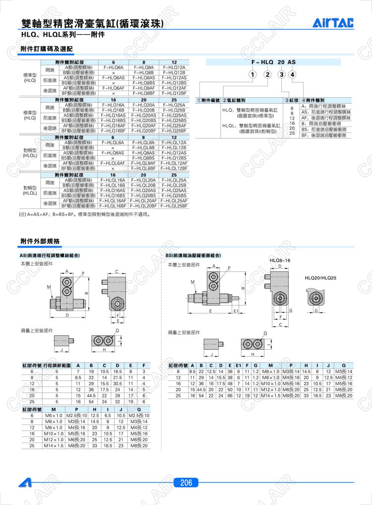 F-HLQ6AS,F-HLQ8AS,F-HLQ12AS,F-HLQ8BS,F-HLQ12BS,F-HLQ16BS,AIRTAC亞德客雙軸型精密滑臺(tái)氣缸附件