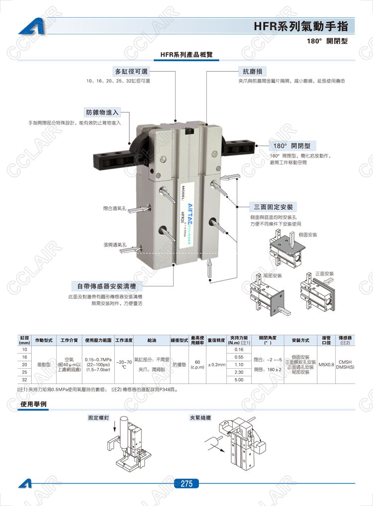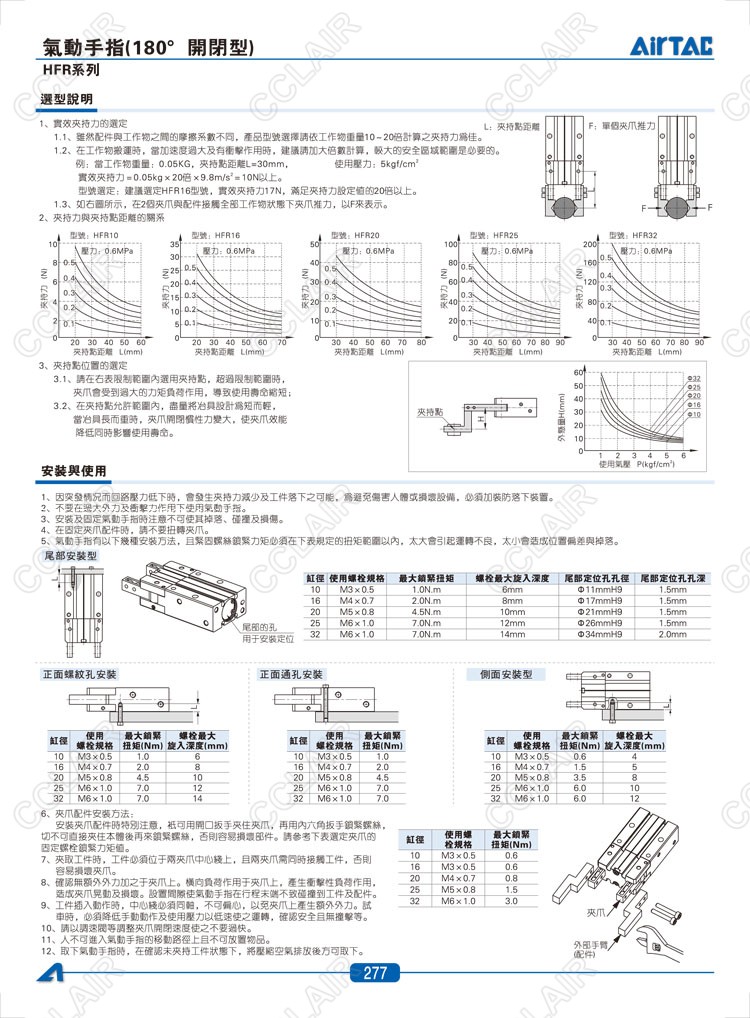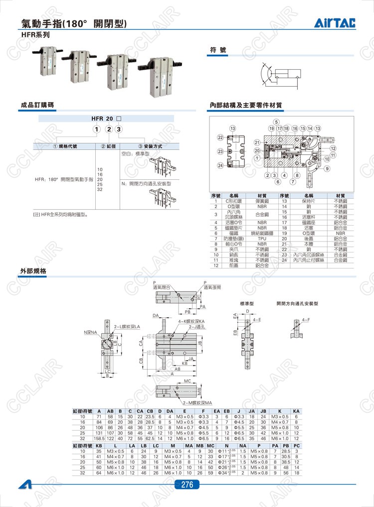 亞德客AIRTAC,HFR10,HFR10-N,HFR16,HFR16-N,HFR20,HFR20-N,HFR25,HFR25-N,HFR32,HFR32-N,氣動手指