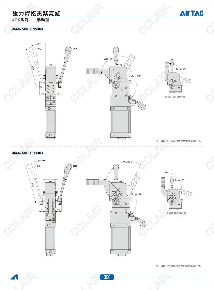 亞德客AIRTAC,JCK40*15AM1R,JCK40*15AM1C,JCKV40*15AM1R,JCKV40*15AM1C,JCKV40*15AM1L,焊接夾緊氣缸-手動(dòng)型